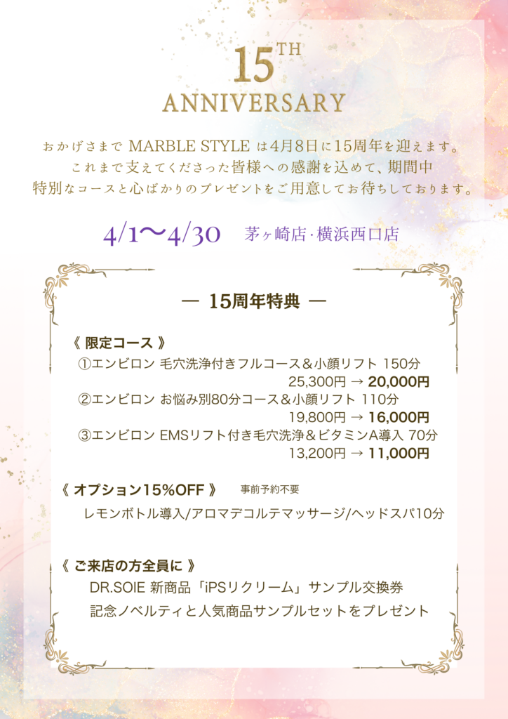 おかげさまでMARBLE STYLEは、4月8日をもちまして15周年を迎えます。